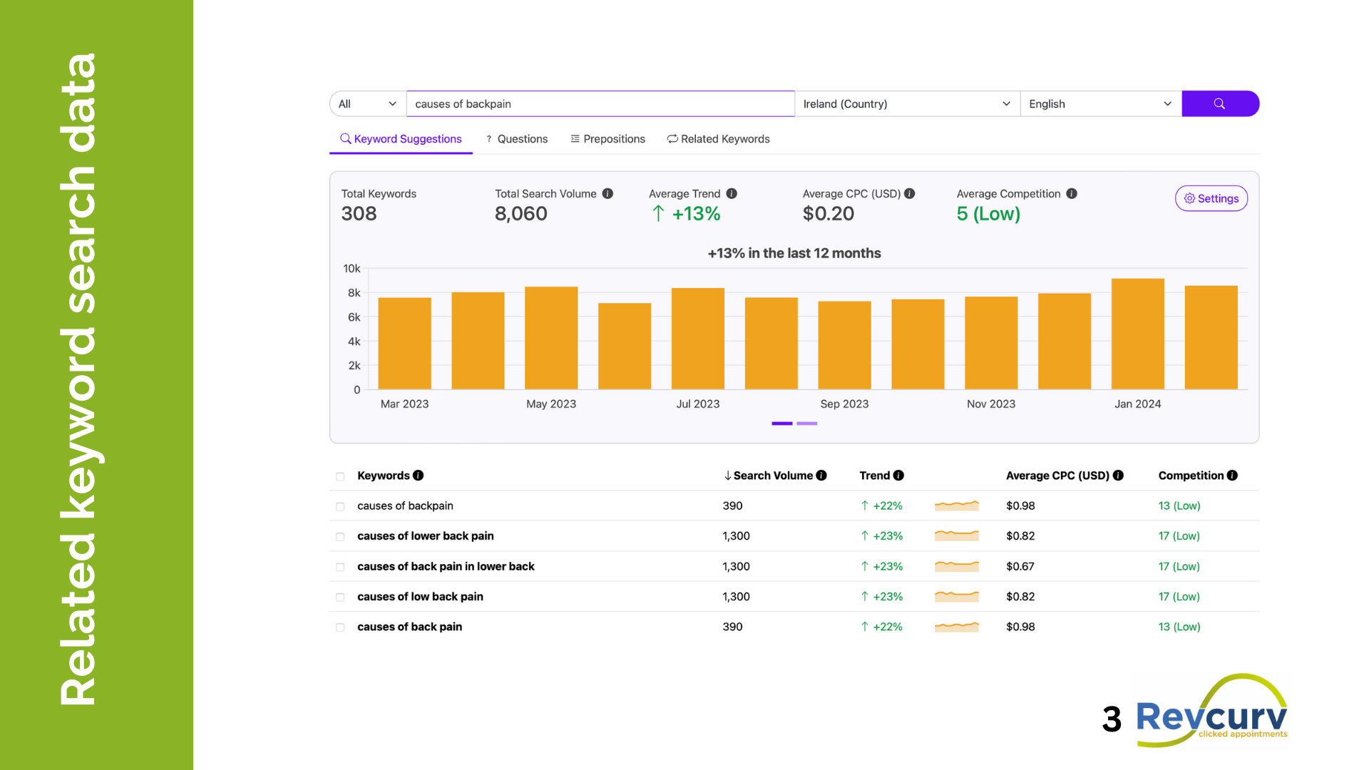 Choose your keyword carefully. A word or phrase that people use to find your products, services or business will give you useful data. For example if you are a physiotherapist you might want to get data around the keyword phrase 'what's causing my shoulder pain?'